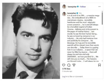 ஆனால் இன்று அதிகாலை அவரது உடல்நிலை திடீரென மோசமடைந்து உயிரிழந்ததாக பாலிவுட் இயக்குநர் கரண் ஜோஹர் அதிகாரப்பூர்வமாக அறிவித்துள்ளார். இதனை தொடர்ந்து மும்பை காவல்துறையும் தர்மேந்திரா மறைவினை உறுதி செய்ததுடன், இறுதிச்சடங்கு ஏற்பாடுகள் தொடங்கியுள்ளன என தெரிவித்துள்ளது.