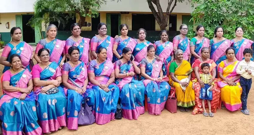 நெகிழ்ச்சி... 40 வருஷங்களாச்சு... ஒரே கலர் ஆடைகளில் மொத்தமாய் குவிந்த முன்னாள் மாணவ, மாணவிகள்!
