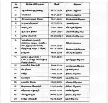 2024ம் ஆண்டுக்கான தமிழக அரசின் பொதுவிடுமுறை பட்டியல்