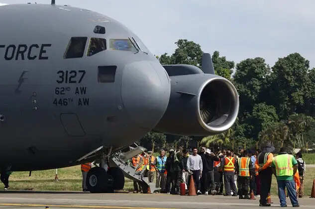 அமெரிக்காவில் சட்டவிரோதமாக குடியிருப்பவர்கள் நாடு கடத்தப்பட்டு வருகின்றனர். அந்த வகையில் அமெரிக்காவில் இருந்து புறப்பட்ட சி17 குளோப்மாஸ்டர் விமானம் நேற்று ஞாயிற்றுக்கிழமை 16ம் தேதி இரவு 10 மணிக்கு 112 இந்தியர்களுடன் வந்த 3-வது விமானம் பஞ்சாப் மாநிலம் அமிர்தசரஸில் தரையிறங்கியது.இந்த விமானத்தில் பஞ்சாபை சேர்ந்தவர்கள் 31 பேர், ஹரியானாவைச் சேர்ந்த 44 பேர், குஜராத்தை சேர்ந்தவர்கள் 33 பேர், உத்தரப்பிரதேசத்தைச் சேர்ந்தவர்கள் இருவர், இமாச்சல் மற்றும் உத்தராகண்டிலிருந்து தலா ஒருவர் என மொத்தம் 112 பேர் இருந்தனர்.