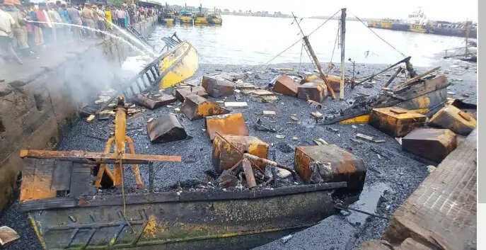 ஆந்திர மாநிலம் விசாகப்பட்டினத்தில் அமைந்துள்ள மீன்பிடித் துறைமுகத்தில் பயங்கர தீ விபத்து ஏற்பட்டது. இதில் ஏராளமான படகுகள் தீயில் எரிந்து கருகி சாம்பல் ஆகின. விசாகப்பட்டினம் அருகே மீனவர்களின் படகுகளை நிறுத்தி வைப்பதற்காக தனிப்பட்ட மீன்பிடி துறைமுகம் உள்ளது. இங்கு நேற்று நள்ளிரவு ஒரு சில படகுகள் தீப்பிடித்து எரிந்தன. அப்போது காற்று பலமாக வீசியதால் மற்ற படகுகளுக்கும் தீ வேகமாக பரவியது.