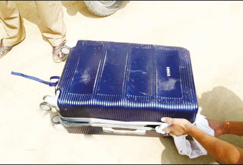 உத்தரபிரதேசம் மாநிலம் காசியாபாத் திலா மோர் ஸ்டேஷன் பகுதியில் போலீசார் ரோந்து பணியில் ஈடுபட்டு இருந்தனர். அப்போது சந்தேகத்துக்கிடமான வகையில் ஒரு பெரிய டிராலி சூட்கேசுடன் அங்கு வந்த பெண்ணை நோட்டமிட்ட போலீசார் அதனை இழுக்க முடியாமல் அவர் இழுத்து வந்ததை கண்டு அவரிடம் போலீசார் விசாரணை மேற்கொண்டுள்ளனர். அப்போது போலீசாரை கண்டு அஞ்சிய அவர் காவல்துறையின் கேள்விகளுக்கு முன்னுக்கு பின் முரணாக பதிலளித்துள்ளார்.