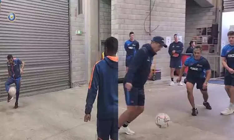 கால்பந்து விளையாடி மகிழ்ந்த கிரிக்கெட் வீரர்கள்… வைரலாகும் வீடியோ…