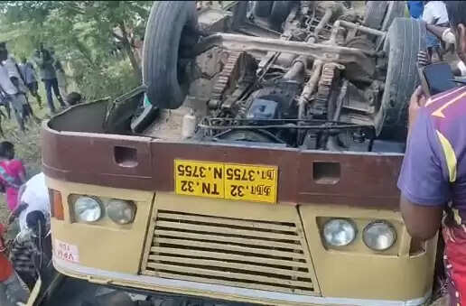 அரசு பேருந்து சாலையில் கவிழ்ந்து 30 பேர் படுகாயம்!!