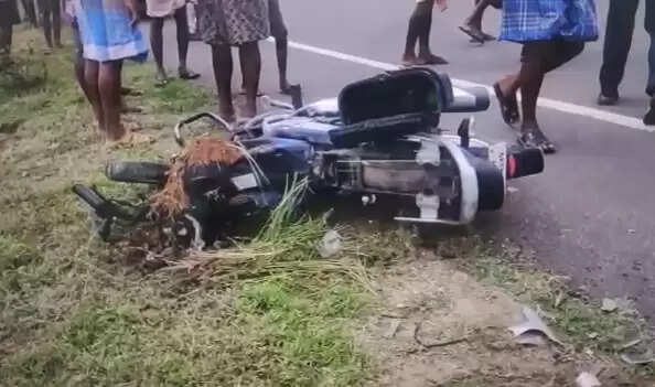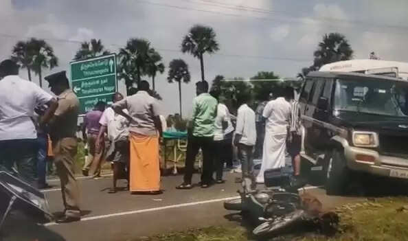 நாமக்கல் மாவட்டம் திருச்செங்கோட்டில் நெய்க்காரப்பட்டி சிவசக்தி நகரைச் சேர்ந்த ராமகிருஷ்ணன் மற்றும் ஜீவிதா ஆகியோருக்கு கடந்த திங்கட்கிழமை திருமணம் நடைபெற்றது. புதுமண தம்பதிகளான இவர்கள் எழுமாத்தூரில் உள்ள தங்களது குலதெய்வ கோயிலுக்கு பொலிரோ ஜீப்பில் சென்று கொண்டிருந்தனர். அப்போது திண்டுக்கல்லைச் சேர்ந்த சுரேஷ் , மற்றும் சுப்பிரமணியம் ஆகிய இருவரும் இரு சக்கர வாகனத்தில் திருச்செங்கோடு நோக்கி வந்து கொண்டிருந்தனர்.