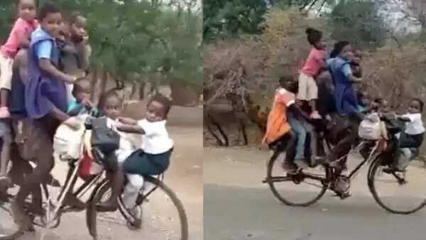 டூவீலர்களில் 3 பேராக சென்றாலே காவல்துறை அதிகாரி சாலையில் மடக்கி பைன் போடுவதுடன் தேவையான அளவு டோசையும் கொடுத்து அனுப்புவார். ஆட்டோவில் 3 பேருக்கு மேல் ஏறினாலே மேலே கொஞ்சம் போட்டு கொடுங்கம்மா என்ற ஆட்டோக்காரரின் குரல் ஒலிக்கும். ஆட்டோவிலும் 10 பேர் வரை ஏற்றிச் சென்ற வீடியோக்களும் பதிவிடப்பட்டுள்ளன. இரண்டே பேர் மட்டுமே செல்லக்கூடிய சைக்கிளில் 9 சிறுவர் சிறுமிகளை அள்ளி அடைத்துக் கொண்டு அசால்டாக ஓட்டிச்செல்கிறார். பின் கேரியரில் 3 சிறுவர்கள் , முன்பக்க பார் கம்பியில் 2 குழந்தைகள், முன் சக்கரத்திற்கு மேல் உள்ள கூடையில் ஒரு குழந்தை, சைக்கிள் ஓட்டுபவரை முன்னும் பின்னுமாக பிடித்துக்கொண்டு 2 குழந்தைகள் என மொத்தம் 9 பேருடன் சைக்கிள் ஓட்டம் தொடர்கிறது. இந்த வீடியோ சமூக வலைதளங்களில் வெளியான சில மணி நேரங்களிலேயே லட்சக்கணக்கான பார்வையாளர்களை கடந்துள்ளது.