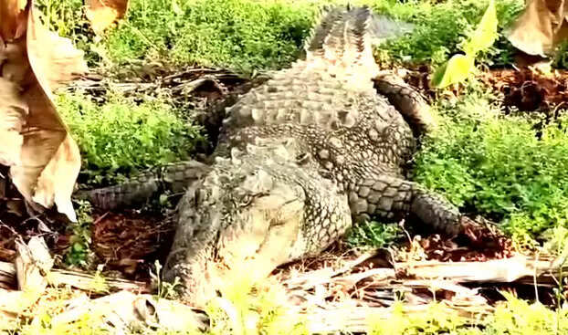 அதிர்ச்சி.. வாழைத் தோட்டத்துக்குள் புகுந்த 10 அடி நீள முதலை.. பதறி அடித்து ஓடிய மக்கள்!