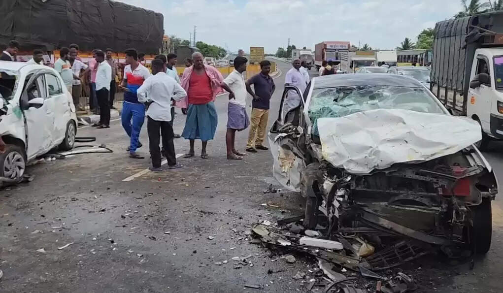 கோர விபத்து.. நேருக்கு நேர் மோதிக்கொண்ட கார்கள்.. 11 பேர் படுகாயம்!
