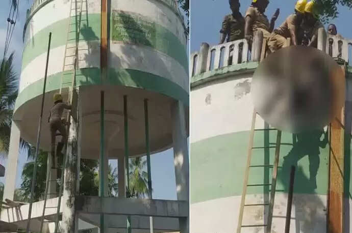 50 அடி உயரம் கொண்ட தொட்டி மீது ஏறிய இளம்பெண்.. இறங்க முடியாமல் தவித்ததால் பரபரப்பு..!