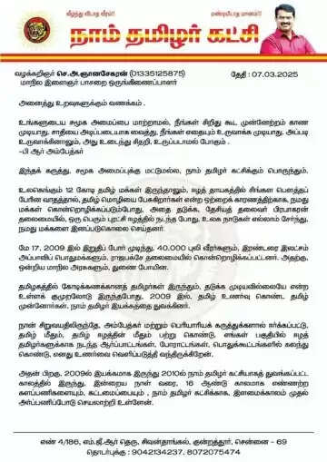 நாம் தமிழர் கட்சியின் ஒருங்கிணைப்பாளர் சீமான் சமீபகாலமாக அடுத்தடுத்து சர்ச்சையில் சிக்கி வருகிறார். பெரியார் குறித்து முரணமாக பேசியதில் பல நிர்வாகிகள் கண்டனம் தெரிவித்து நாதகவை விட்டு விலகி வருகிறார். பல்வேறு மாவட்டங்களில் கட்சியின் நிர்வாகிகள் கூண்டோடு விலகி வருகின்றனர். தொடர்ந்து கட்சியின் முக்கிய நிர்வாகிகளும் விலகி வருகின்றனர்.