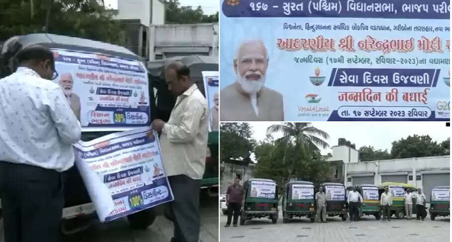 இன்று செப்டம்பர் 17ம் தேதி ஞாயிற்றுக்கிழமை பிரதமர் மோடியின் 73வது பிறந்த நாள் விழா நாடு முழுவதும் கோலாகலமாக கொண்டாடப்படுகிறது. அவருடைய சொந்த மாநிலமான குஜராத்தில் பாஜகவை சேர்ந்த பல்வேறு அமைப்புக்கள் கட்சியினர் கொண்டாட்டத்தில் ஈடுபட்டுள்ளது. அந்த வகையில், சூரத் நகரில் ஆட்டோ ஓட்டுநர்கள், வாடிக்கையாளர்களுக்கு சிறப்பு சலுகைகளை அறிவித்துள்ளனர்.