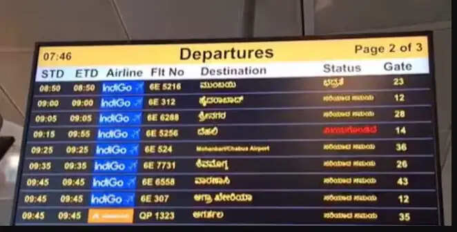 Hindi is removed in digital display boards of Kempegowda International airport in Bengaluru.