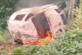 போடிமெட்டு மலைப்பாதையில் கார் பள்ளத்தில் கவிழ்ந்து தீப்பற்றியது... படுகாயங்களுடன் 4 பேர் மீட்பு!