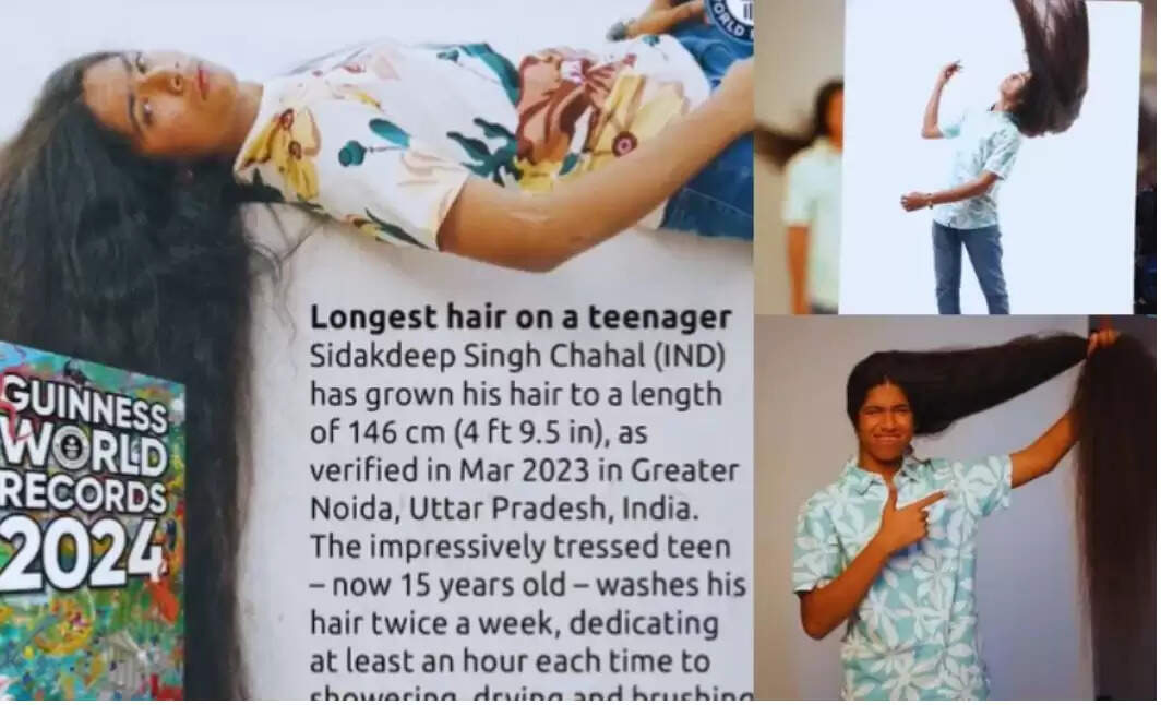கின்னஸ் சாதனைக்காக பல்வேறு வகையினரும் பல்வேறு தரப்பட்ட முயற்சிகளை மேற்கொண்டு வருகின்றனர். அதன் அடிப்படையில் 15 சிறுவன் ஒருவன் தலைமுடியை நீளமாக வளர்த்து சாதனை படைத்துள்ளார். இவரது சாதனை கின்னஸ் சாதனை புத்தகத்தில் இடம் பெற்றுள்ளது. உத்தர பிரதேசத்தின் கிரேட்டர் நொய்டா நகரில் வசித்து வரும் சிறுவன் சிடக்தீப் சிங் சாஹல் . இவருக்கு வயது 15. சாஹலுக்கு சிறு வயது முதலே சாஹலுக்கு நீண்ட தலைமுடிதான். இதனால் சாஹலுக்கும் பெரும் வருத்தம். இதனை அடிக்கடி பெற்றோரிடம் கூறி நச்சரித்துக் கொண்டே இருப்பார்.