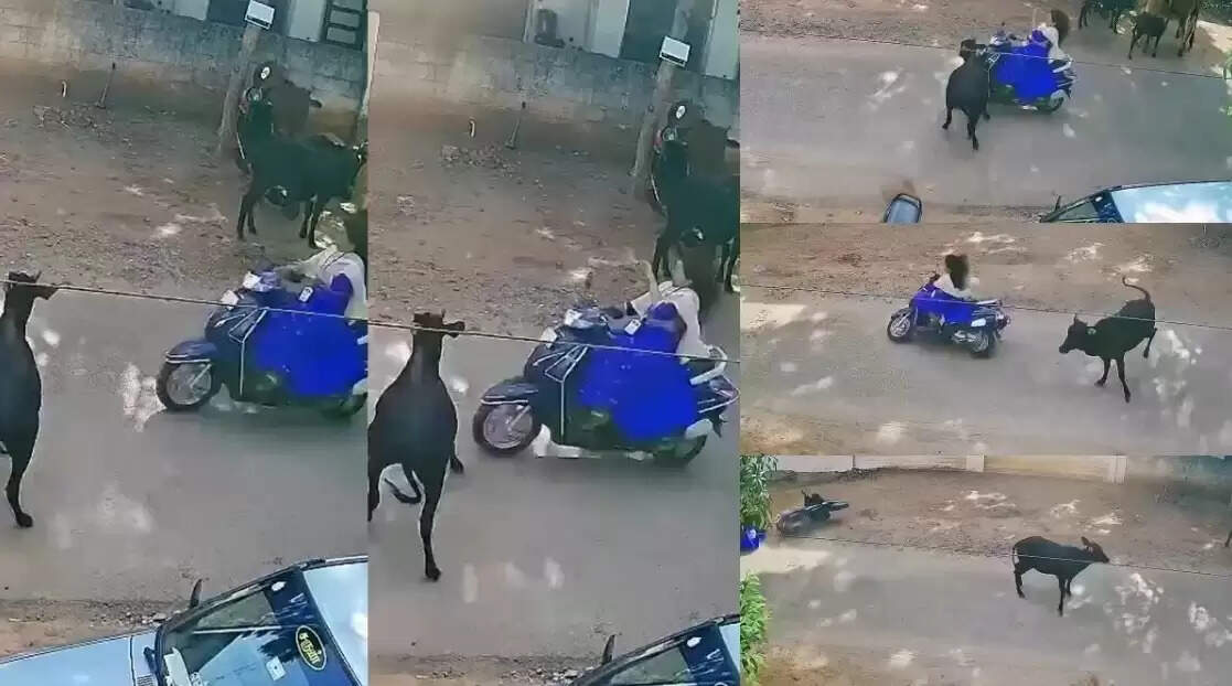 அதிர்ச்சி வீடியோ... டூவீலர் மீது மாடு மோதி கல்லூரி மாணவி படுகாயம்... மருத்துவமனையில் அனுமதி!