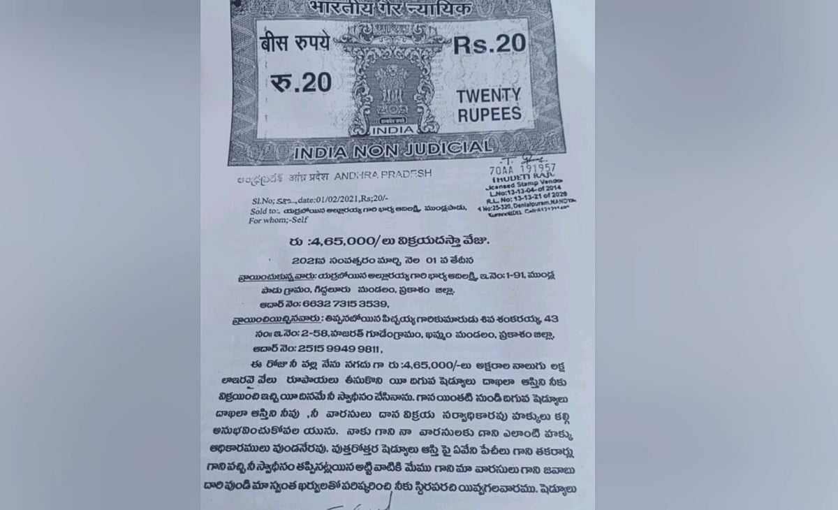அவற்றை ஆதாரமாக வைத்து கடந்த ஆண்டு மனைவி பெயரில் இருந்த நிலத்தை தன்னுடைய சகோதரி ஆதிலட்சுமி பெயருக்கு மாற்றம் செய்தார். பின்னர் அந்த நிலத்தை 40 லட்ச ரூபாய்க்கு விற்பனை செய்ய பேரம் பேசி வந்தார். இது பற்றி தகவல் அறிந்த மாதவி அளித்த புகாரின் பேரில் வழக்கப் பதிவு செய்த நந்தியாலா போலீசார் போலீஸ் காண்ஸ்டபிள் சங்கரய்யா மீது மோசடி வழக்கு பதிவு செய்து விசாரணை நடத்தி வருகின்றனர்.
