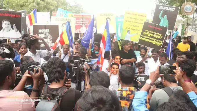 அத்துடன் படுகொலை செய்யப்பட்ட ஆம்ஸ்ட்ராங் போன்ற முகமூடிகளை அணிந்து கண்டன கோஷங்களையும் எழுப்பினர். இந்த பேரணியில் இயக்குநர் பா.ரஞ்சித், நடிகர் மன்சூர் அலிகான், அட்டக்கத்தி தினேஷ், திருமுருகன் காந்தி, பூவை ஜெகன் மூர்த்தி, சின்னத்திரை நடிகர்கள் உட்பட பலர் கலந்து கொண்டனர். பின்னர் மேடையில் பேசிய இயக்குநர் பா.ரஞ்சித், “ நாங்கள் திமுக மீது குற்றம் சுமத்துவதற்காக இந்த பேரணி நடைபெறுவதாக சமூக வலைத்தளங்களில் எழுதுகின்றனர். அரசு அதிகாரிகள், காவல்துறையினர், ஆம்ஸ்ட்ராங் கொலைக்கு உரிய நீதி கிடைக்க வேண்டும் என்பதை உணர வேண்டும்.