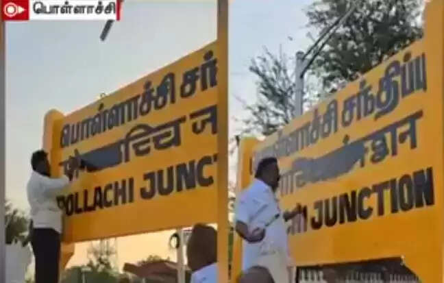 தமிழகத்தில் ஹிந்தி மொழி திணிப்பிற்கு எதிர்ப்பு தெரிவிக்கும் வகையில்   இன்று காலை பொள்ளாச்சி ரயில் நிலையத்தில் வைக்கப்பட்டுள்ள பெயர் பலகையில் இந்தி எழுத்துக்களை அழித்து விட்டனர். அதன்படி திராவிட முன்னேற்றக் கழகத்தைச் சேர்ந்த சட்டதிட்ட திருத்த குழு உறுப்பினர் தென்றல் செல்வராஜ் தலைமையில் நகர மன்ற உறுப்பினர்கள் இணைந்து ரயில் நிலையத்தில் உள்ள பெயர் பலகையில் கருப்பு பெயிண்ட் மூலம் பொள்ளாச்சி என ஹிந்தியில் எழுதி இருந்ததை அழித்து எதிர்ப்பு தெரிவித்துள்ளனர்.