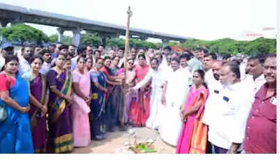கோவை செட்டிபாளையம் எல் அண்ட் டி புறவழிச்சாலை பகுதியில் முப்பெரும் விழா நடைபெறும் இடத்தில் அமைச்சர் சு.முத்துசாமி மற்றும் திமுக நிர்வாகிகள் நேற்று ஆய்வு செய்தனர். பின்னர், செய்தியாளர்களிடம் பேசிய அமைச்சர் சு.முத்துசாமி, “மக்களவைத் தேர்தலில் திமுக தலைமையிலான கூட்டணிக்கு தமிழக மக்கள் அமோக வெற்றியை வழங்கியுள்ளனர். இதையடுத்து, கலைஞர் நூற்றாண்டு நிறைவு விழா, வாக்களித்த மக்களுக்கு நன்றி தெரிவித்தல், வெற்றிவியூகம் வகுத்த திமுக நிர்வாகிகளுக்குப் பாராட்டு ஆகிய முப்பெரும் விழாவை, கோவையில் நடத்த முதல்வர் மு.க.ஸ்டாலின் அனுமதி அளித்துள்ளார்.