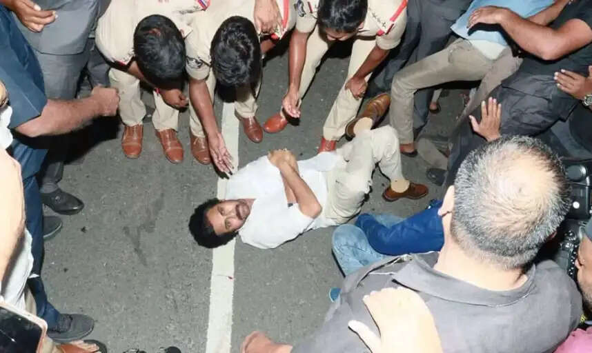 சந்திரபாபு நாயுடுவைப் பார்க்க விமானம் மூலம் புறப்பட பவன் கல்யாண் தயாரானார். ஆனால் காவல்துறை அனுமதி தரவில்லை. இதனையடுத்து கார் மூலம் ஹைதராபாத் பயணிக்கத் தொடங்கினார். போலீசார் அதையும் தடுத்து நிறுத்தினர். சந்திரபாபு நாயுடு தற்போது உள்ள மங்களகிரிக்கு நடந்து செல்ல பவன் கல்யாண் முடிவு செய்தார்.இதற்கும் அனுமதி தராததால் பவன்கல்யாண் சாலையில் படுத்து போராட்டத்தில் ஈடுபட்டார். இதனால் அப்பகுதியில் பெரும் பரபரப்பு ஏற்பட்டது.