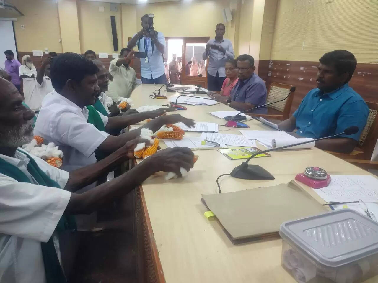 தொடர்ந்து விலையை உயர்த்தி வழங்கினால் மட்டுமே விவசாயிகள் இலாபகரமாப தொகை பெற முடியும் என தெரிவித்து மக்காச்சோளம் மற்றும் பருத்தியை திருச்சி மாவட்ட ஆட்சியரிடம் காண்பித்து கோரிக்கை வைத்தனர்.