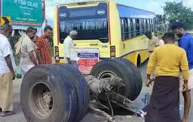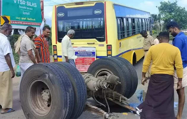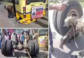 அரசு பேருந்தின் அச்சு முறிந்து சாலையில் ஓடிய சக்கரங்கள்... 3 மாணவர்கள் படுகாயம்!!