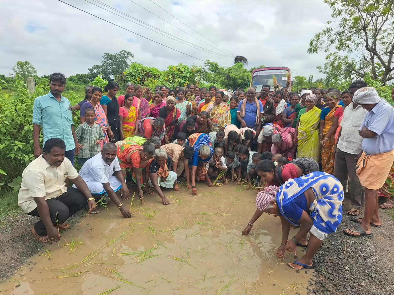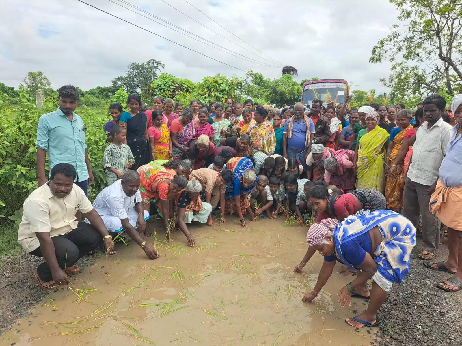 அரசு பேருந்தை சிறைப்பிடித்து நடுரோட்டில் நாற்று நட்டு போராட்டம்!