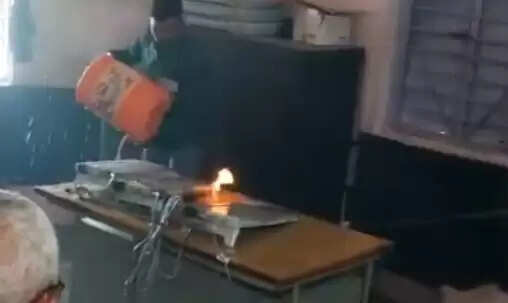 பின்னர் வாக்குச்சாவடியில் இருந்த அதிகாரிகள் தண்ணீரை ஊற்றி தீயை அணைத்தனர். இதனால் அங்கு பதட்டமான சூழல் நிலவி வருகிறது. இந்த பரபரப்பு வீடியோ தற்போது இணையத்தில் வெளியாகி மிகப்பெரிய அளவில் வைரலாகி வருகிறது.
