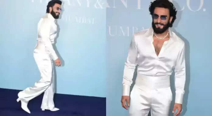 வெள்ளை நிற ஜிகுஜிக்கு உடை அணிந்திருந்த ரன்வீர் சிங், கழுத்தில் ரூ. 2 கோடி மதிப்புள்ள வைர நெக்லஸ் அணிந்திருந்தது குறிப்பிடத்தக்கது. இதுமட்டுமின்றி, வெள்ளை உடைக்கு ஏற்ற ஷூக்களை அணியாமல், வெள்ளை நிற ஹை ஹீல்ஸ் அணிந்து அசத்தினார் ரன்வீர். ஹீரோயின்களைப் போலவே ஹீல்ஸ் போட்டுக் கொண்டு போஸ் கொடுத்திருக்கிறார்.