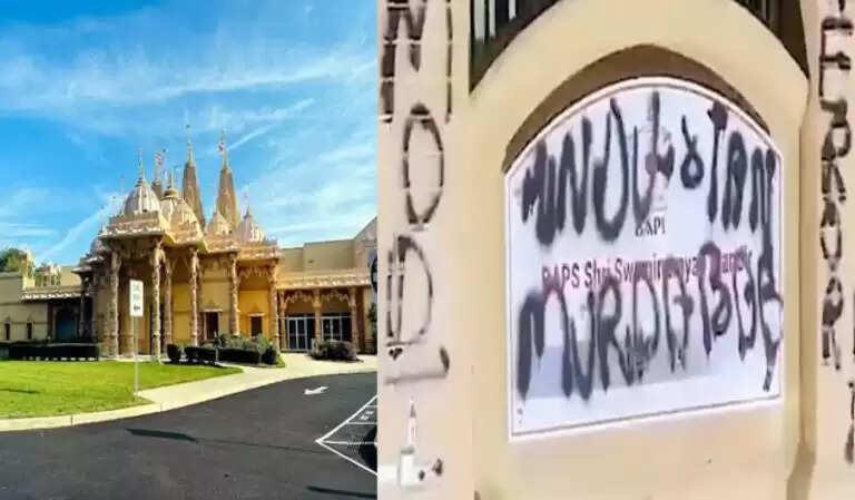 அதில் "இந்துக்களே திரும்பிப் போ" என்று எழுதப்பட்டுள்ளது. முன்னதாக, கடந்த 17ம் தேதி, நியூயார்க்கில் உள்ள, 'பாப்ஸ்' அமைப்பால் நிர்வகிக்கப்படும், மெல்வில் பகுதியில் உள்ள, ஸ்ரீ சுவாமி நாராயணன் கோவிலிலும், மதத்திற்கு எதிரான வாசகங்கள் எழுதப்பட்டன. இது குறித்து கோயில் நிர்வாகத்தினர் போலீசில் புகார் அளித்துள்ள நிலையில், வெறுப்புணர்வு உரை எழுதியவர்களை போலீசார் இணையதளத்தில் தேடி வருகின்றனர்.