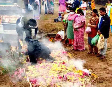 திடீரென சரிந்து விழுந்து அவரும்  உயிரிழந்தார். இதனை பார்த்த  பிள்ளைகளும், உறவினர்களும் அதிர்ச்சியடைந்தனர்.  உறவினர்கள் நெகிழ்ச்சியுடன்  இறந்த கணவன், மனைவி இருவருக்கும்  ஒன்றாக இறுதிச் சடங்குகள் செய்யப்பட்டு ஊர்வலம் எடுத்துச் சென்றனர்.  பின்னர்  கல்லறை தோட்டத்தில் ஒரே இடத்தில் அடக்கம் செய்தனர். திருமணம் முதல் பிரியாத   கணவன், மனைவி சாவிலும் இணை பிரியாமல் உயிரிழந்தது அப்பகுதியில் மிகுந்த  அதிர்ச்சியும் ஆச்சரியத்தையும் ஏற்படுத்தி உள்ளது.
