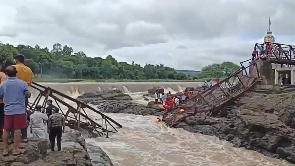 மகாராஷ்டிரா மாநிலம் புனேவில் உள்ள இந்திரயானி ஆற்றின் மீதிருந்த இரும்புப் பாலம் இடிந்து விழுந்ததில் சுற்றுலா பயணிகள் சிலர் நீரில் அடித்துச் செல்லப்பட்டனர்.