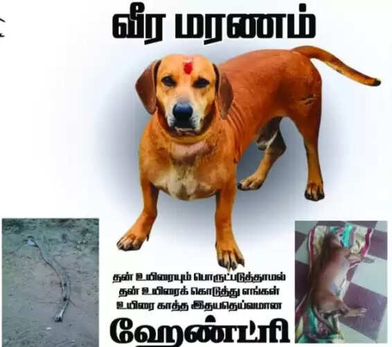 இந்நிலையில் வீட்டில் யாரும் இல்லாத நேரத்தில் குழந்தைகள் வீட்டின் பின்புறம் விளையாடிக் கொண்டிருந்தனர். அப்போது அருகில் உள்ள முந்திரி தோப்பில் இருந்து 6 நீள பாம்பு வந்தது. இதைப் பார்த்த வீட்டு நாய் “ஹென்றி” அங்கு விளையாடிக் கொண்டிருந்த குழந்தைகளை காலால் தள்ளியும் குறைத்தும் பாதுகாப்பான இடத்தில் சேர்த்தது. அப்போது பாம்பை விரட்ட நீண்ட நேரம் போராடிய நிலையில் நாயை பாம்பு கடித்தது. இதில் நாய் சம்பவ இடத்திலேயே உயிரிழந்தது.