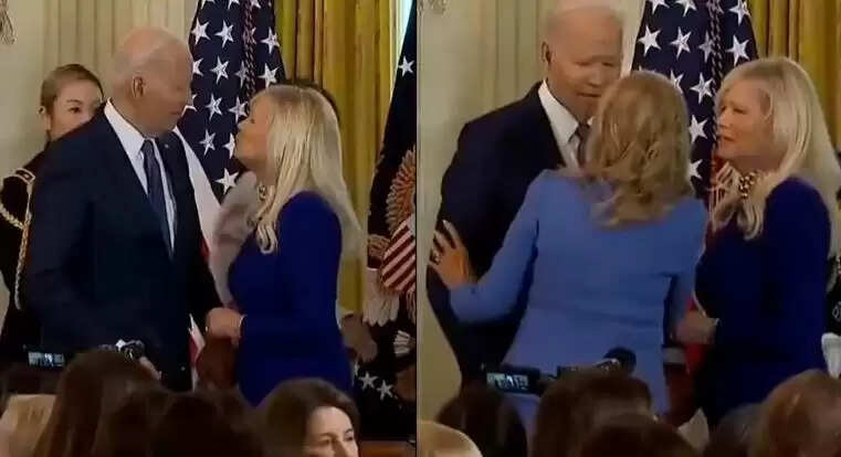இந்த நிலையில், அமெரிக்க அதிபர் ஜோ பைடன் மற்றொரு பெண்ணை தனது மனைவியாக நினைத்து முத்தமிடப் போகும் வீடியோ இணையத்தில் வைரலாகி வருகிறது. அதாவது, அந்த வீடியோவில் அமெரிக்க அதிபர் ஜோ பைடன் அந்த பெண்ணை நீண்ட நேரம் பார்த்துக் கொண்டிருக்கிறார். பின்னர் அவர் தனது மனைவி ஜில் பைடன் என்று நினைத்தார். அவர் அந்தப் பெண்ணின் பக்கம் நெருங்கினார். அப்போது ஜில் பைடன் வந்து அவரைத் தடுத்தார். இந்த வீடியோ இணையவாசிகள் மத்தியில் பெரும் விவாதத்தை ஏற்படுத்தியுள்ளது.