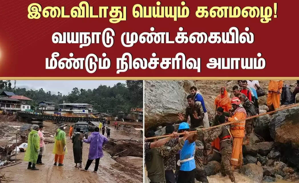கேரள மாநிலம் வயநாடு மாவட்டத்தில் கனமழை தொடர்ந்து பெய்து வருகிறது. இன்று முண்டக்கை மற்றும் சூரல்மலை பகுதிகளில் வெள்ளப்பெருக்கு மற்றும் நிலச்சரிவு அச்சம் ஏற்பட்டுள்ளது. 2024 ஜூலை 30ம் தேதி இதே பகுதியில் ஏற்பட்ட பெரும் நிலச்சரிவில் 400-க்கும் மேற்பட்டோர் உயிரிழந்தனர். அத்துடன், 100-க்கும் மேற்பட்ட வீடுகள் மண்ணில் புதைந்துவிட்டன. இந்த துயர சம்பவம் நடந்து ஒரு ஆண்டு நிறைவு பெற்ற நிலையில் மீண்டும் அதே போலவே வெள்ளம் ஏற்பட்டிருப்பது பெரும் அதிர்ச்சியையும், பரபரப்பையும் ஏற்படுத்தியுள்ளது.