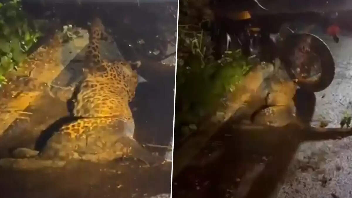 பகீர் வீடியோ... நடுரோட்டில் டூவீலர் மீது மோதிய சிறுத்தை... அலறிய இளைஞருக்கு எலும்பு முறிவு!