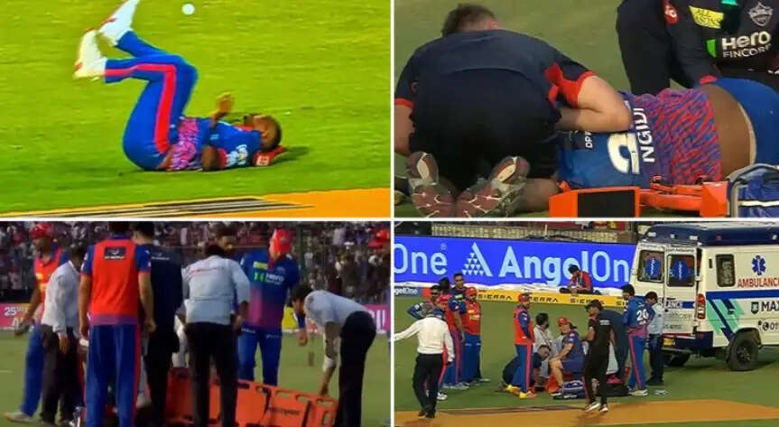 நடப்பு ஐபிஎல் தொடரில் டெல்லி கேபிடல்ஸ் மற்றும் பஞ்சாப் கிங்ஸ் அணிகளுக்கு இடையிலான ஆட்டம் இன்று நடைபெற்று வருகிறது. இந்தப் போட்டியின் போது களத்தில் பந்துவீச்சில் ஈடுபட்டிருந்த டெல்லி அணியின் வேகப்பந்து வீச்சாளர் லுங்கி இங்கிடி, உயரே வந்த பந்தை கேட்ச் பிடிக்க மிகத் தீவிரமாக முயன்றார். அப்போது எதிர்பாராத விதமாக நிலைதடுமாறி மைதானத்தில் கீழே விழுந்த அவருக்குத் தலையில் பலத்த காயம் ஏற்பட்டது.