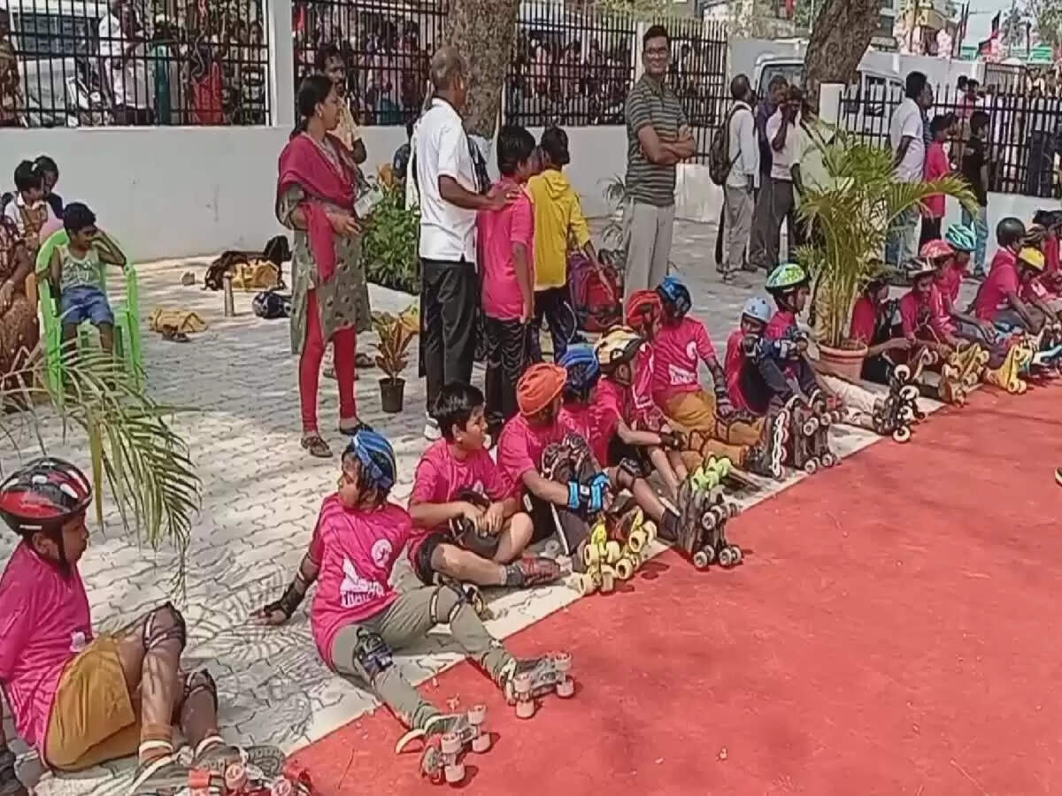 அதுவரை சுட்டெரிக்கும் வெயிலில் ஸ்கேட்டிங் மாணவ மற்றும் மாணவிகள் காத்திருந்தனர். அதில் பல மாணவ, மாணவிகள் சோர்ந்து போய் மைதானத்திலேயே உட்கார்ந்து இருந்தனர். ஆனால் ஸ்கேட்டிங் விளையாட்டு மைதானத்தில் கல்வெட்டு திறப்பதற்காக அவசர அவசரமாக தற்காலிக கல்வெட்டு ஒட்டப்பட்டது.