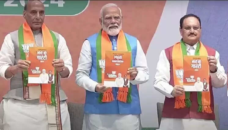 நாடாளுமன்ற தேர்தலை முன்னிட்டு பாஜக தனது தேர்தல் அறிக்கையை இன்று வெளியிட்டது. டெல்லியில் பாஜக தலைமை அலுவலகத்தில் தேர்தல் அறிக்கை வெளியிடப்பட்டது. பிரதமர் மோடி, பாஜக தேசிய தலைவர் ஜே.பி.நட்டா, மத்திய அமைச்சர்கள் ராஜ்நாத் சிங், அமித் ஷா உள்ளிட்டோர் முன்னிலையில் பா.ஜ.க. தேர்தல் அறிக்கை வெளியிடப்பட்டது.