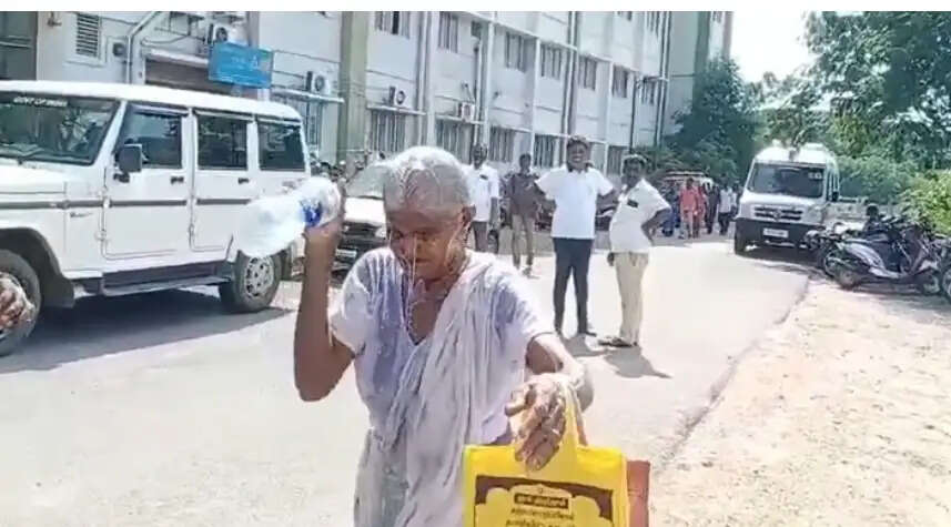 இது குறித்து காவல்துறையில் புகார் அளித்தும் நடவடிக்கை எடுக்கவில்லை. கலெக்டர் அலுவலகத்தில் பலமுறை மனு அளித்தும் இதுவரை எந்த நடவடிக்கையும் எடுக்கவில்லை இந்நிலையில் இன்று மீண்டும் மனு அளிப்பதற்காக அருக்காணியும், அவரது மகன் குப்புசாமியும் திருப்பூர் கலெக்டர் அலுவலகத்திற்கு வருகை தந்தனர்.