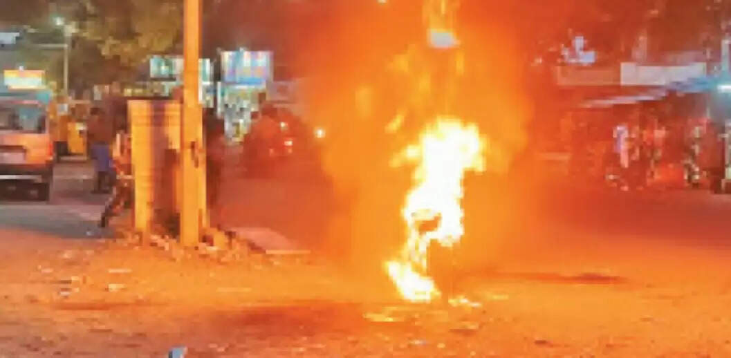 வாகன ஓட்டிகளே உஷார்... திடீரென தீப்பிடித்து எரிந்த பைக்.... பெரும் பரபரப்பு!