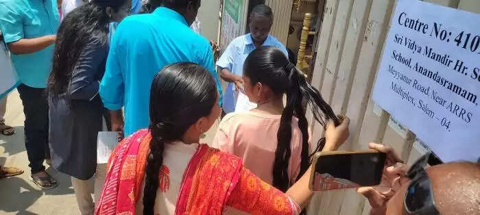 அதேபோல், மாணவிகள் சிலர் பின்னல் சடையுடன் வந்த நிலையில், தங்களது மகள்களின் சடையைப் பிரித்துவிட்டு தேர்வுக்கு அம்மாக்கள் அனுப்பி வைத்தனர். மாணவ, மாணவிகள் தேர்வு எழுதிவிட்டு திரும்பும் வரை, பெற்றோர்கள் தேர்வு மையம் அமைந்துள்ள சாலைகளில் வெயிலையும் பொருட்படுத்தாமல் கூட்டம் கூட்டமாக காத்திருந்தனர்.