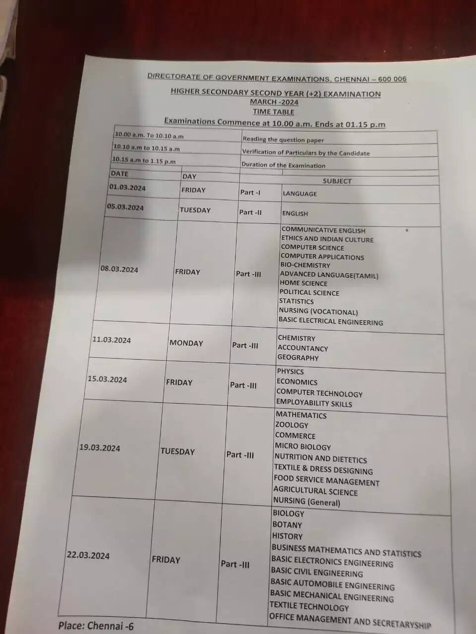 பத்தாம் வகுப்புக்கு செய்முறை தேர்வு பிப்ரவரி 23ம் தேதி தொடங்கி 29ம் தேதி முடிவடைகிறது. 11ம் வகுப்புக்கு பிப்ரவரி 19ம் தேதி தொடங்கி பிப்ரவரி 24ம் தேதி முடிவடைகிறது. 12ம் வகுப்பு செய்முறை தேர்வுகள் பிப்ரவரி 12 ம் தேதி முதல் பிப்ரவரி 17ம் தேதி வரை நடைபெறுகிறது.