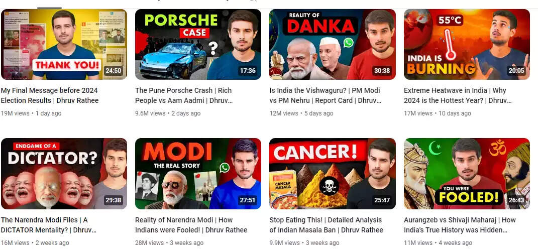 ஒருபுறம், சமீபத்தில் நடந்து முடிந்த தேர்தலில் பாஜக கடும் பின்னடைவை சந்தித்ததற்கு பல காரணங்கள் இருந்தாலும், வடமாநில யூடியூபரால் அக்கட்சிக்கும் தோல்வி ஏற்பட்டுள்ளதாக தகவல்கள் வெளியாகி வருகின்றன. ஹரியானாவைச் சேர்ந்த பொறியியலாளர் துருவ் ராத்தே, தனது பெயரில் யூடியூப் சேனலை நடத்தி வருகிறார். யூடியூப்பில் மட்டும் அவருக்கு 21.6 மில்லியன் சந்தாதாரர்கள் உள்ளனர். அவரது வீடியோக்கள் 4.1 பில்லியன் (41 கோடி) பார்வைகளைக் கடந்துள்ளன.