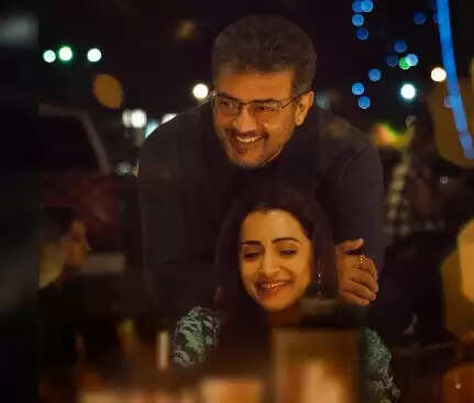 இதுவரை வெளியான போஸ்டர்களில் சால்ட் அண்ட் பெப்பர் லுக்கில் காணப்பட்ட அஜித் இதில் இளமையான தோற்றத்தில் காணப்படுகிறார். த்ரிஷா-அஜித் இருவரும் கேண்டில் லைட் டின்னரில் மகிழ்ச்சியோடு இருக்கும் ஸ்டில் வெளியிடப்பட்டுள்ளது.
