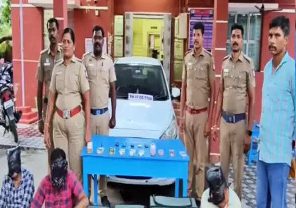 அப்போது அங்கு வந்து தேடியும் அந்த போலீசார் இல்லை. அவர்கள் ஏமாற்றப்பட்டது தெரியவந்துள்ளது. பின்னர், சம்பவம் நடந்த நாட்றம்பள்ளி காவல் நிலையத்துக்குச் சென்று புகார் அளித்தார். இதனையடுத்து இரு தனிப்படைகள் அமைத்து தீவிரமாக தேடி வரும் நிலையில் நாட்றம்பள்ளி போலீசார் இன்று தேவராஜ் மற்றும் அவரது கூட்டாளிகள் ராஜேஷ்பாபு, கோபி ராஜா ஆகியோரை கைது செய்துள்ளனர். அவர்களிடம் இருந்து பணமோசடிக்கு பயன்படுத்திய கார் மற்றும் 3 லட்சத்து 75 ஆயிரம் ரூபாய் பறிமுதல் செய்யப்பட்டது. இந்நிலையில், காவலர்களைப் போல் சீருடையில் வந்து மோசடியில் ஈடுபட்ட நான்கு பேரை போலீஸார் தேடி வருகின்றனர்.