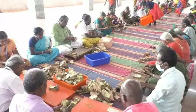அவ்வாறு பக்தர்களால் செலுத்தப்படும் காணிக்கை உண்டியல்களை கோவில் நிர்வாகம் மேற்பார்வையில் மாதம் இருமுறை திறந்து எண்ணப்பட்டு வருகிறது. இம்மாதம் சமயபுரம் மாரியம்மன் கோவிலில் பக்தர்களால் செலுத்தப்பட்ட காணிக்கை உண்டியல்களை கோவில் இணை ஆணையர் திருமதி.கல்யாணி தலைமையில் கோவில் வளாகத்தில் உள்ள கோவில் ஊழியர்கள், தன்னார்வலர்கள் என 200க்கும் மேற்பட்டோர் உண்டியல்களில் சேர்ந்திருந்த காணிக்கைகளை எண்ணும் பணியில் ஈடுபட்டனர்.