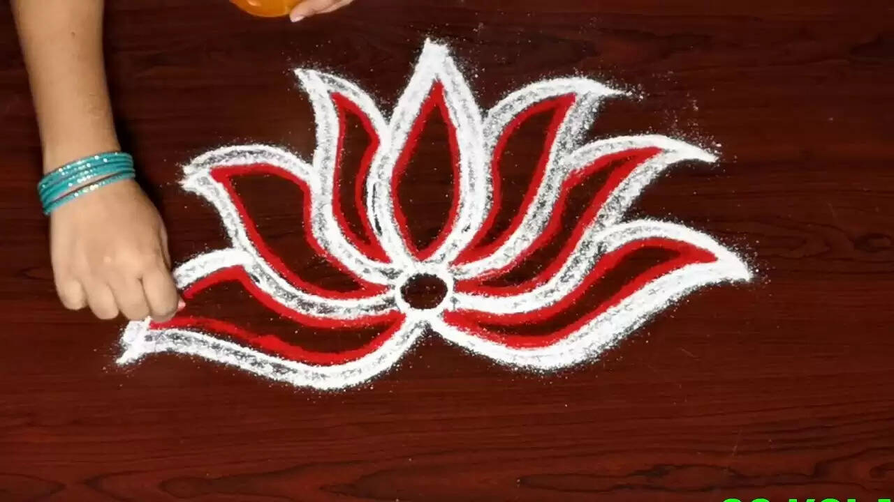தாமரையின் நடுவில் ஓம் என்றும் எல்லா இதழ்களிலும், ஐம் என்றும் எழுத வேண்டும். கோலத்தில் நடுவில் குத்து விளக்கு அல்லது காமாட்சி விளக்கும் நான்கு மற்றும் எட்டு இதழ்களில் அகல் விளக்குகளும் ஏற்றி வைக்க வேண்டும்.