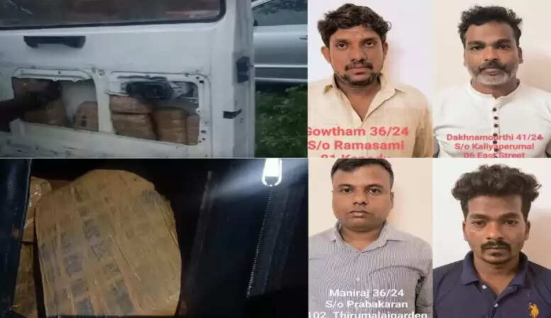 அப்போது, வெளி மாவட்ட பதிவு எண் கொண்ட மூன்று சொகுசு கார்கள் வரிசையாக வந்தன. சந்தேகம் அடைந்த போலீசார் அந்த கார்களை மறித்து சோதனை நடத்தினர். அப்போது காருக்குள் சீட் கவர், கார் கதவு, டிக்கி என பல ரகசிய அறைகள் அமைக்கப்பட்டு அதில் கஞ்சா பொட்டலங்கள் கடத்தி வந்தது தெரிய வந்தது. இதையடுத்து, கடத்தலில் ஈடுபட்ட விழுப்புரம் மாவட்டம் திருக்கோவிலூரைச் சேர்ந்த தட்சணாமூர்த்தி, சிவமூர்த்தி, திருப்பூர் மாவட்டம் இடுவாய் பகுதியைச் சேர்ந்த மணிராஜ், புதுக்கோட்டை மாவட்டம் மணல்மேல்குடியைச் சேர்ந்த கவுதமன் ஆகிய 4 பேரை கைது செய்து விசாரணை நடத்தினர்.