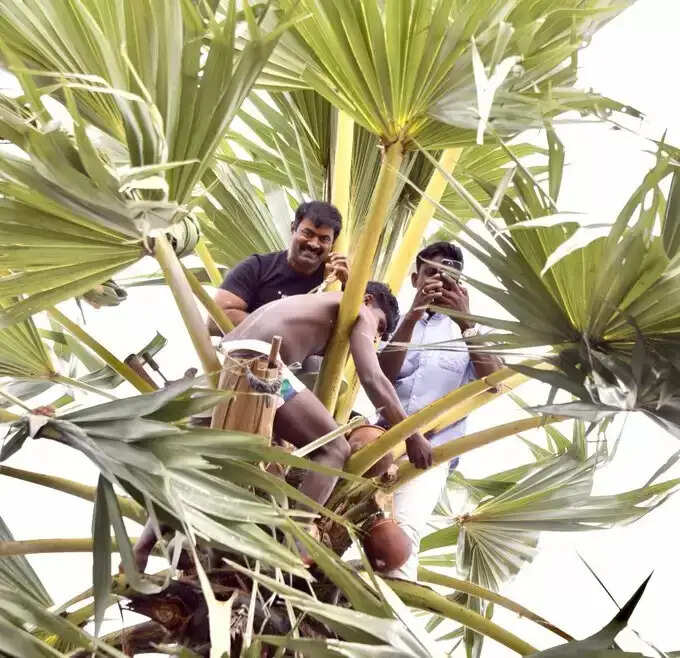 இதுகுறித்து வெளியிட்டுள்ள அறிக்கையில், “20 அடி உயரமுள்ள குட்டையான பனை மரத்தைத் தேர்வு செய்து முன்கூட்டியே மிகவும் பாதுகாப்பாக பலமான கயிறுகளால் உருவாக்கப்பட்டிருந்த ஏணி படிக்கட்டுகளில் விறுவிறுவென ஏறி, ஏற்கனவே தயாராக வைக்கப்பட்ட ‘கள்ளை’ இறக்கி, அங்கேயே ’கள்ளைக்’ குடித்து இன்றைய போராட்ட ஷூட்டிங்கை சீமான் வெற்றிகரமாக முடித்திருக்கிறார். பனையேறி ‘கள்’ இறக்கும் சாதனை வீடியோக்கள் உலகம் முழுவதும் போய்ச் சேர வேண்டியவர்களிடம் விரைந்து சென்று விட்டது. ஒரு வாரக் கணக்கு இன்று நேர் செய்யப்பட்டிருக்கும்.!